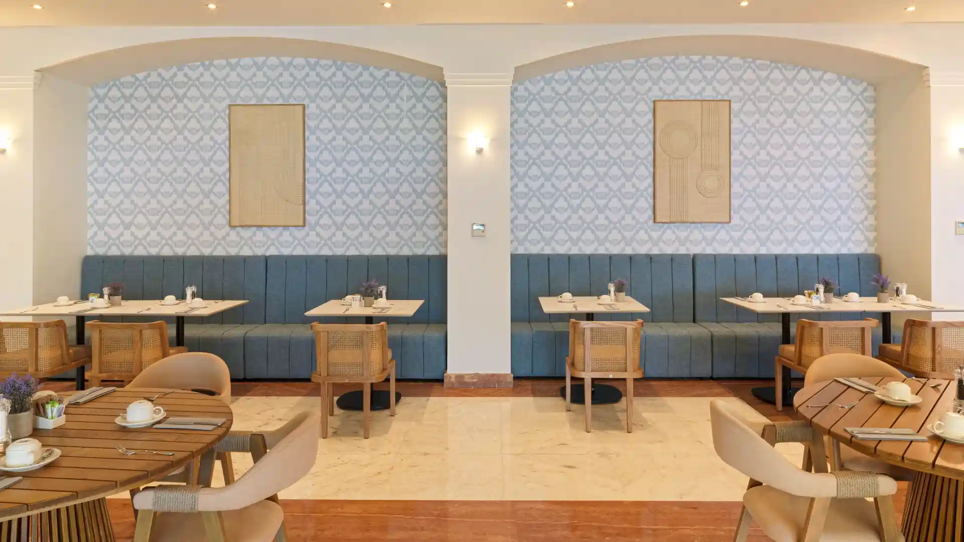 Bienvenue à l'Almyra, votre sanctuaire culinaire pour des délices à volonté ! Savourez un somptueux éventail de plats tout en profitant d'une vue imprenable sur la mer. Ne manquez pas nos dîners à thème et les spectacles de cuisine en direct - c'est une expérience de buffet sans pareil.